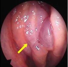 6、多发性息肉常来自于筛窦,单个息肉多从上颌窦内长出,坠入后鼻孔称“后鼻孔息肉”。