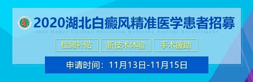 遵循《中国防治慢性病中长期规划》指导,在湖北省的支持下,2020年11月13日-15日,湖北地区启动白癜风“精准医学项目患者招募”,帮助患者更好更快康复,避免因病返贫致贫。申请详情可拨打咨询热线:027-83886690。